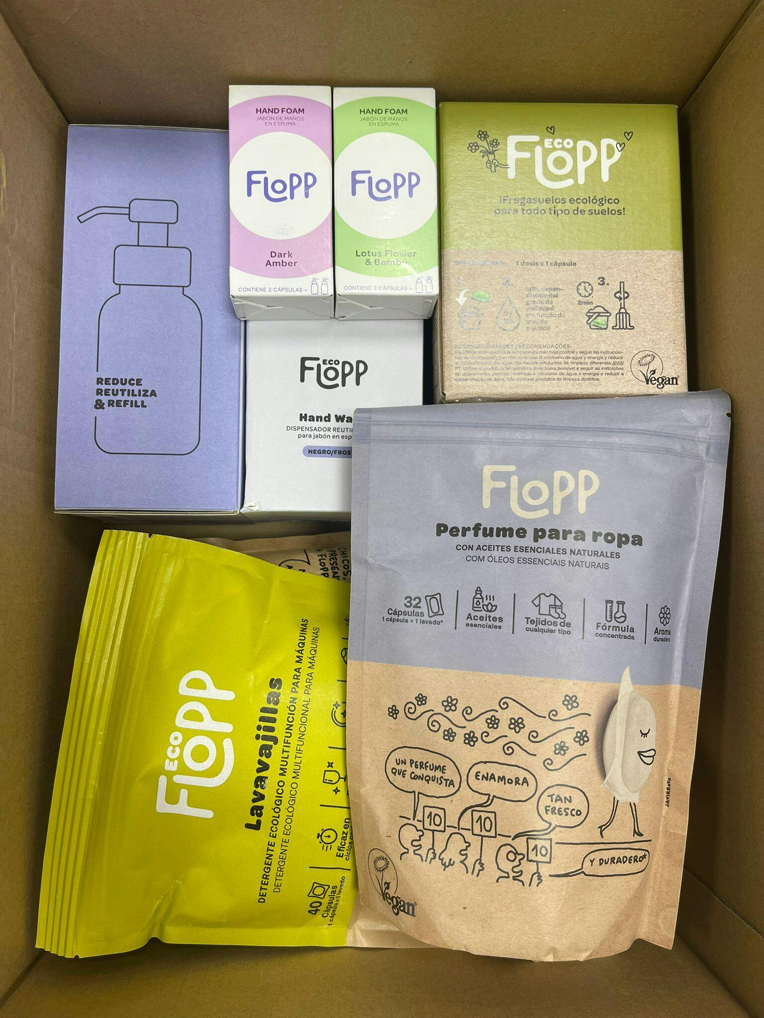 FLOPP Kit dúo - Botellas Jabón de Manos + Refill Dark Amber + Refill Lotus
